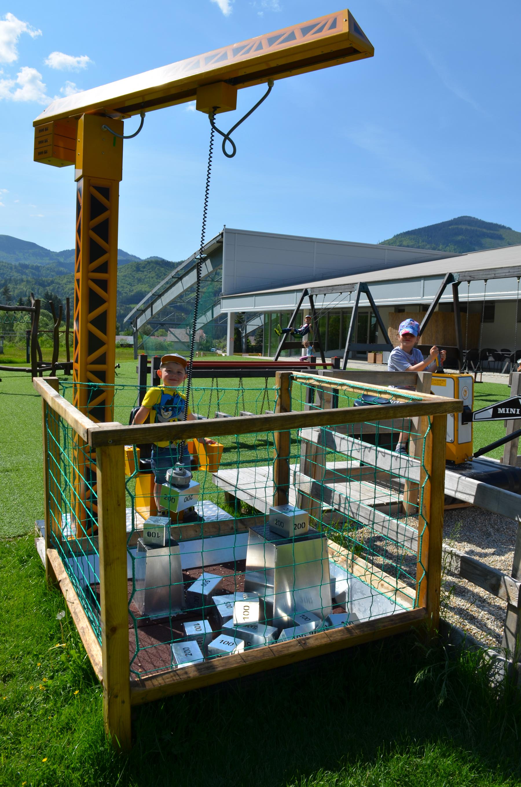 Mini verzie oboch strojov sú v dohľade z vonkajšej terasy reštaurácie Vlnka, takže rodičia malých bagristov a žeriavnikov si môžu nerušene posedieť na terase a v pokoji si vychutnať kávu či osviežujúci nápoj.