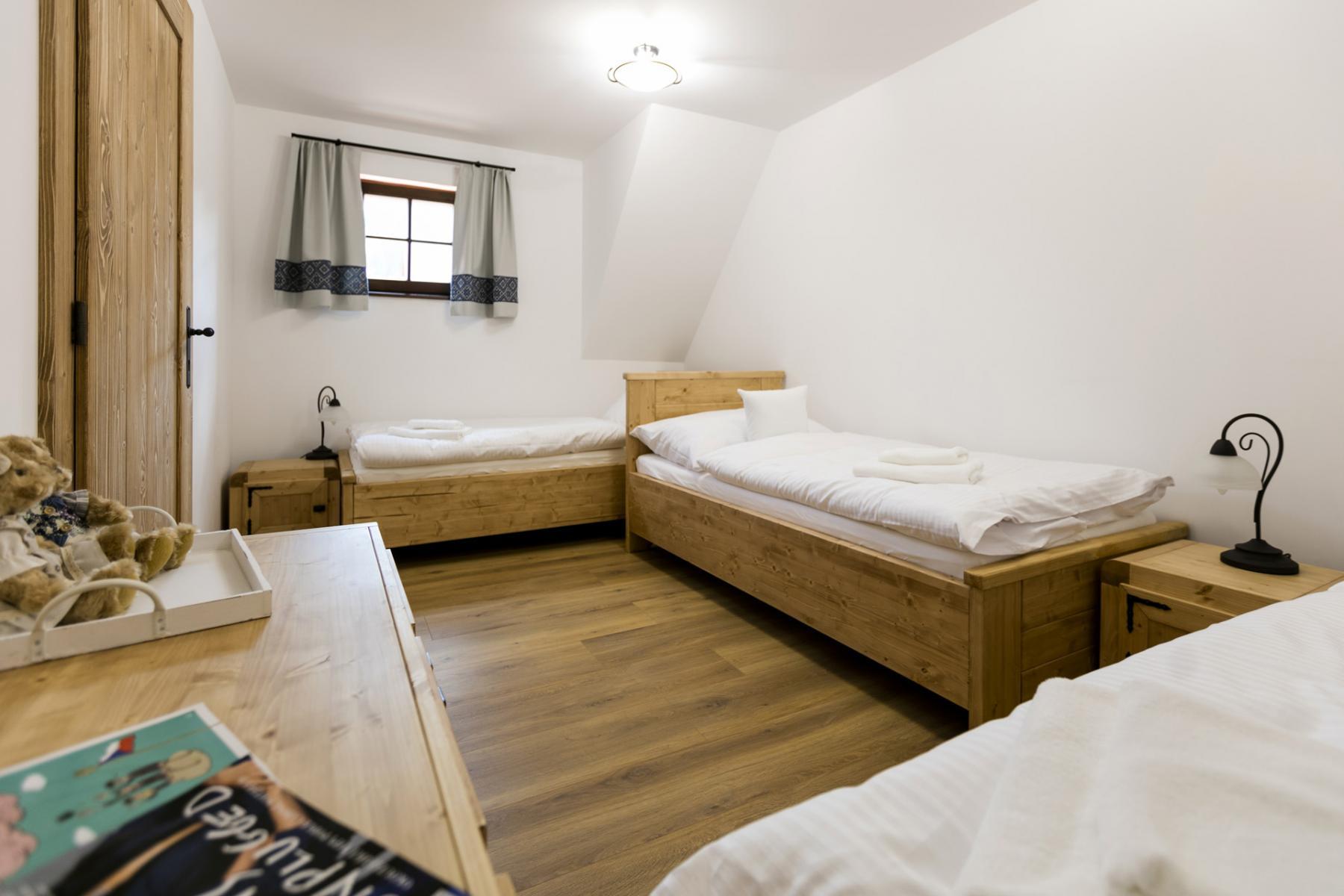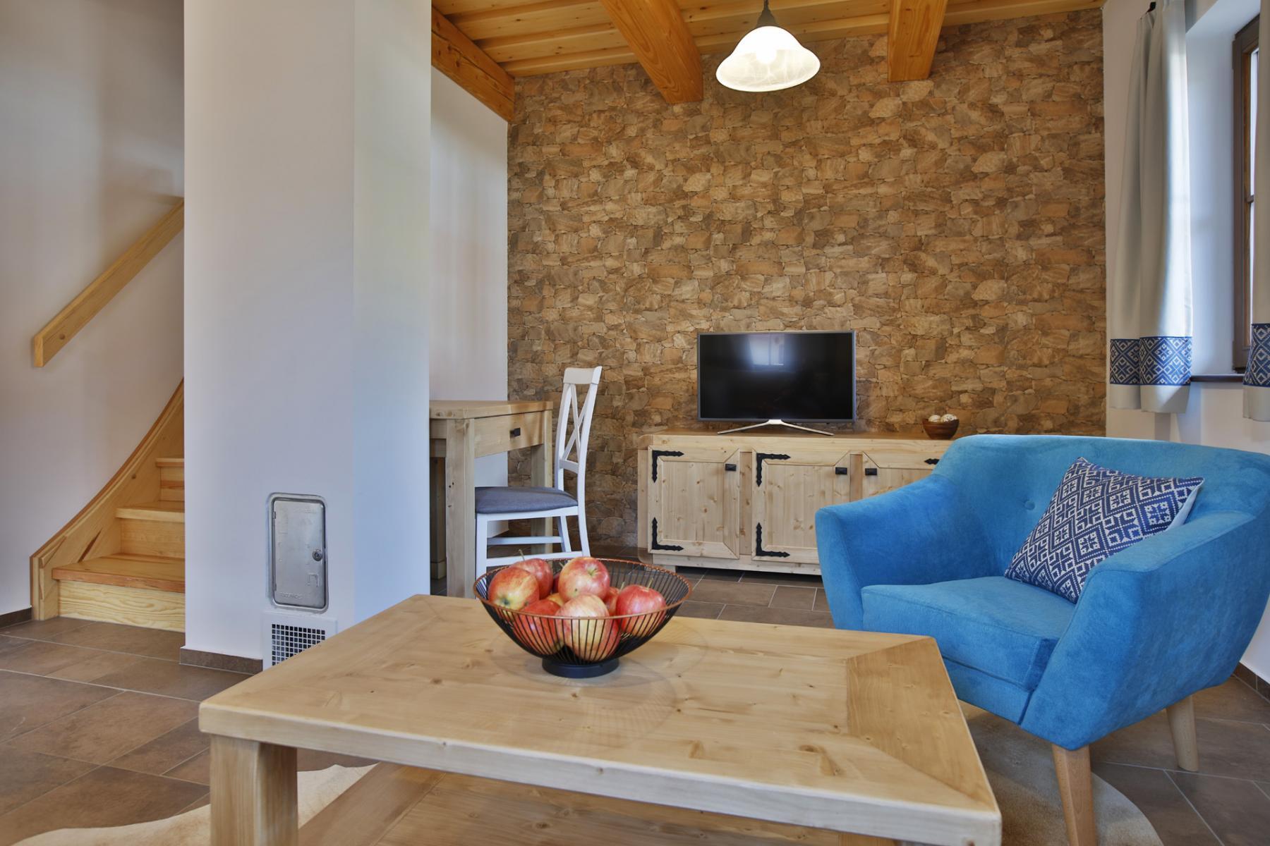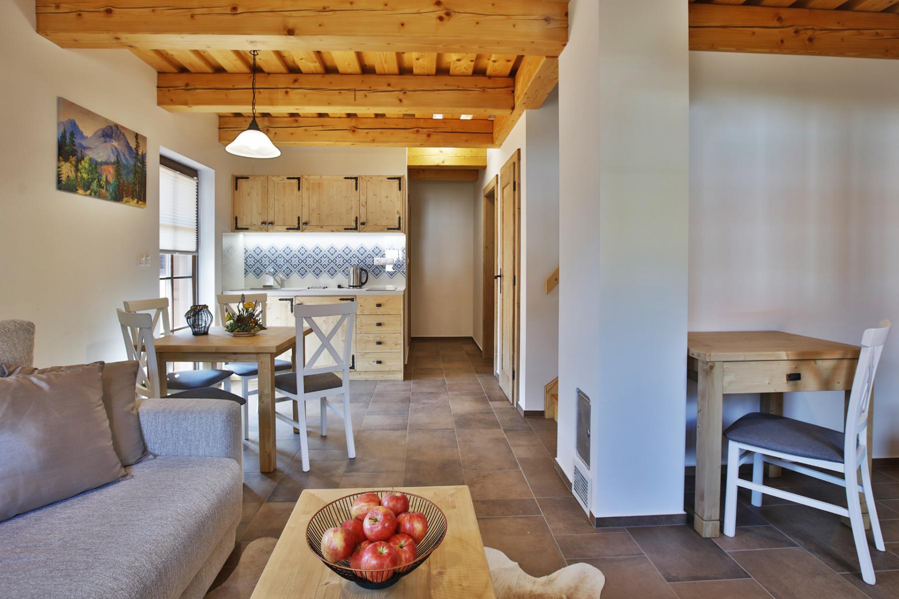 Na prízemí sa nachádza veľký priestor, kde si môžete zložiť napríklad celý lyžiarsky výstroj alebo bicykel. Je tu tiež útulná kuchynka, hala s jedálenským stolom a obývacia izba. Na poschodí je jedna spálňa s manželskou posteľou a jedným oddeleným lôžkom, ale aj kúpeľňa s toaletou. Ďalšie WC je na prízemí.