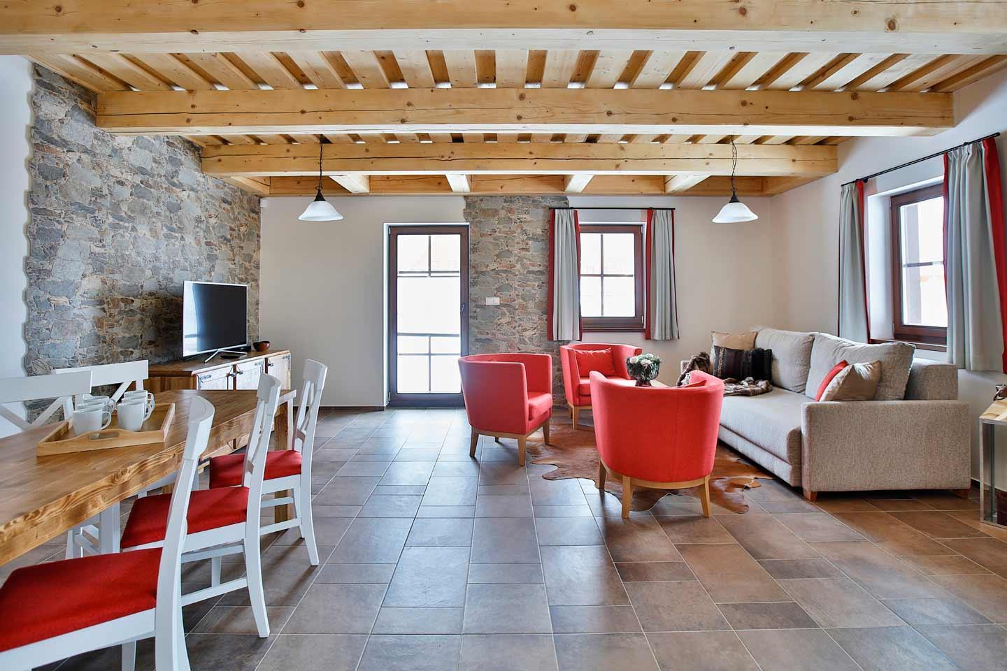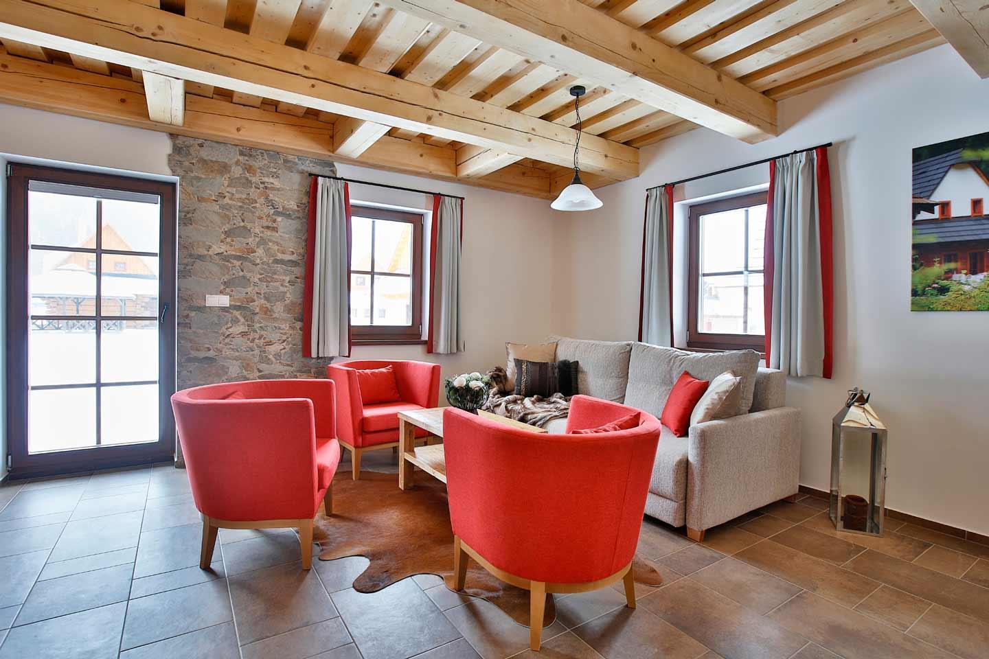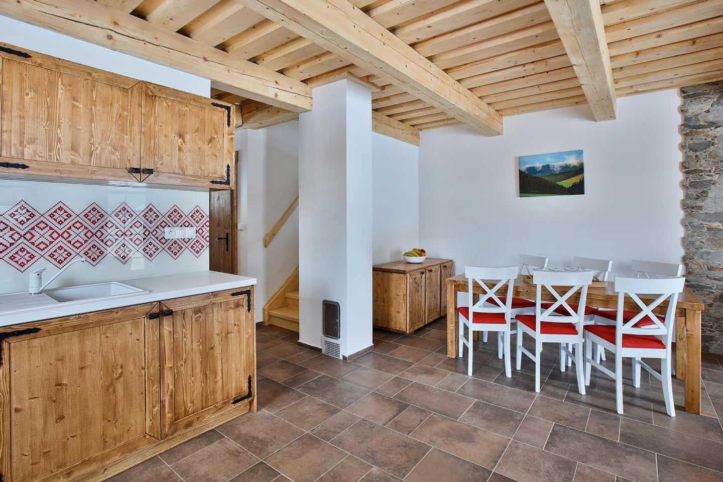 V chalupách prevládajú najmä prírodné materiály ako drevo či kameň. Preto pôsobia, akoby vypadli zo starých malieb slovenských maliarov. Sú však nové a vnútri poskytujú všetok komfort moderného ubytovania.