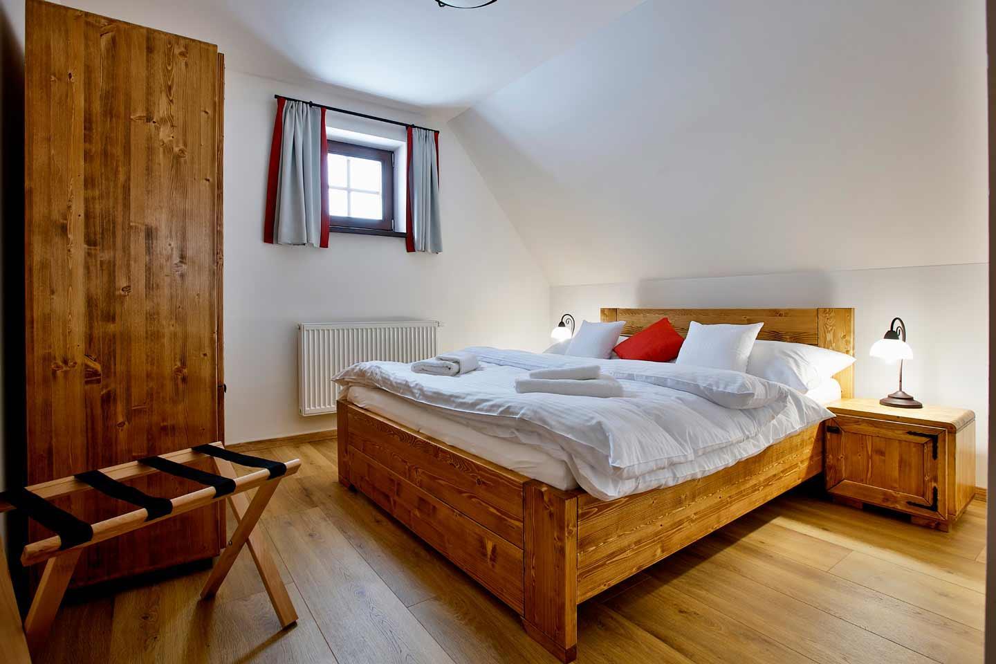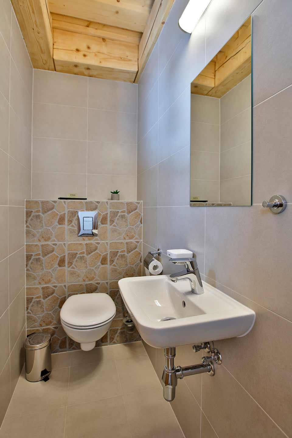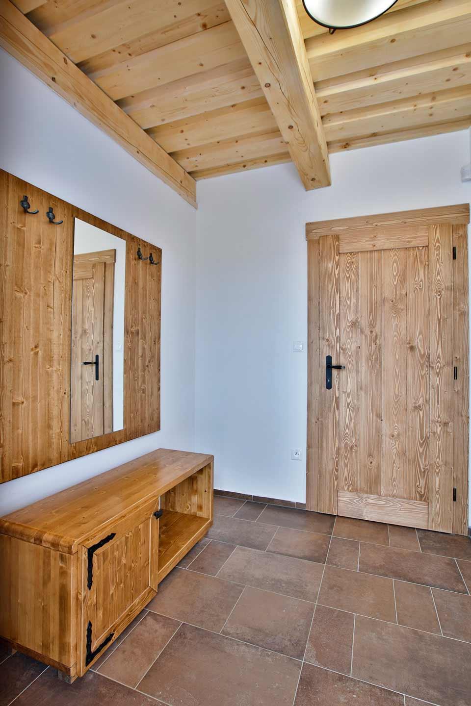 Na poschodí sú tri samostatné spálne a kúpeľňa s WC. Ďalšie WC sa nachádza na prízemí. Interiér dýcha tradičnými ľudovými prvkami, ktoré dopĺňa moderný nábytok.