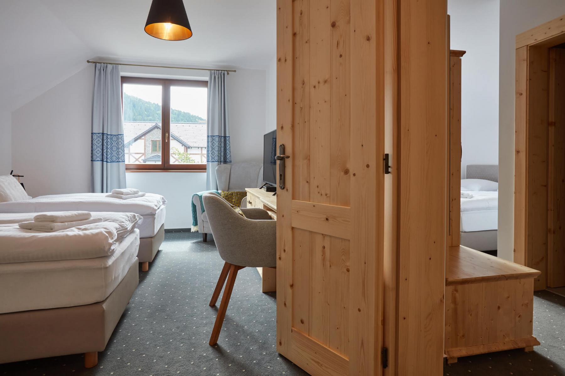 Ak hľadáte dvojlôžkovú izbu pod lesom, z ktorej to máte na pešo do celého areálu Gothal, vrátane konferenčných miestností, vyskúšajte dvojlôžkovú Izbu B v jednom z našich samostatných penziónov pod horou.