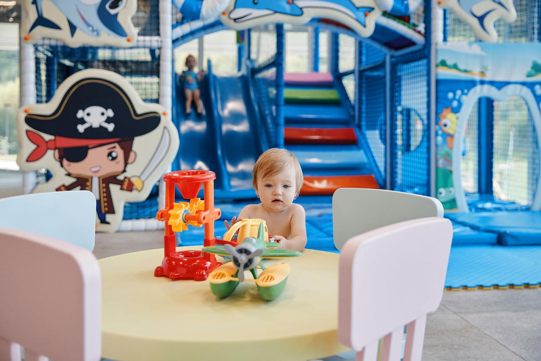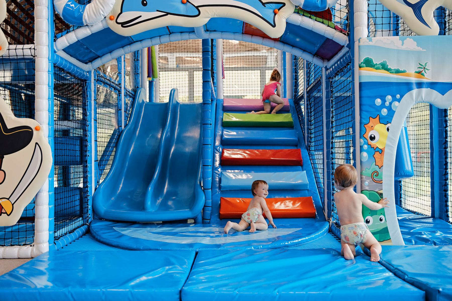 Okrem zábavy v samotnom bazéne je v jeho okolí množstvo ďalších možností na hranie. Detský hrad je oáza hier pre deti. Nájdu v ňom aktivity na skákanie a šmýkanie sa, sieťový tunel, súťaže medzi súrodencami, stupienkový most, ktorý poskytuje výhľad na okolie a mäkký, boxovací závesný valec pre budúceho zápasníka či zápasníčku. Vaša ratolesť sa určite nebude nudiť.
